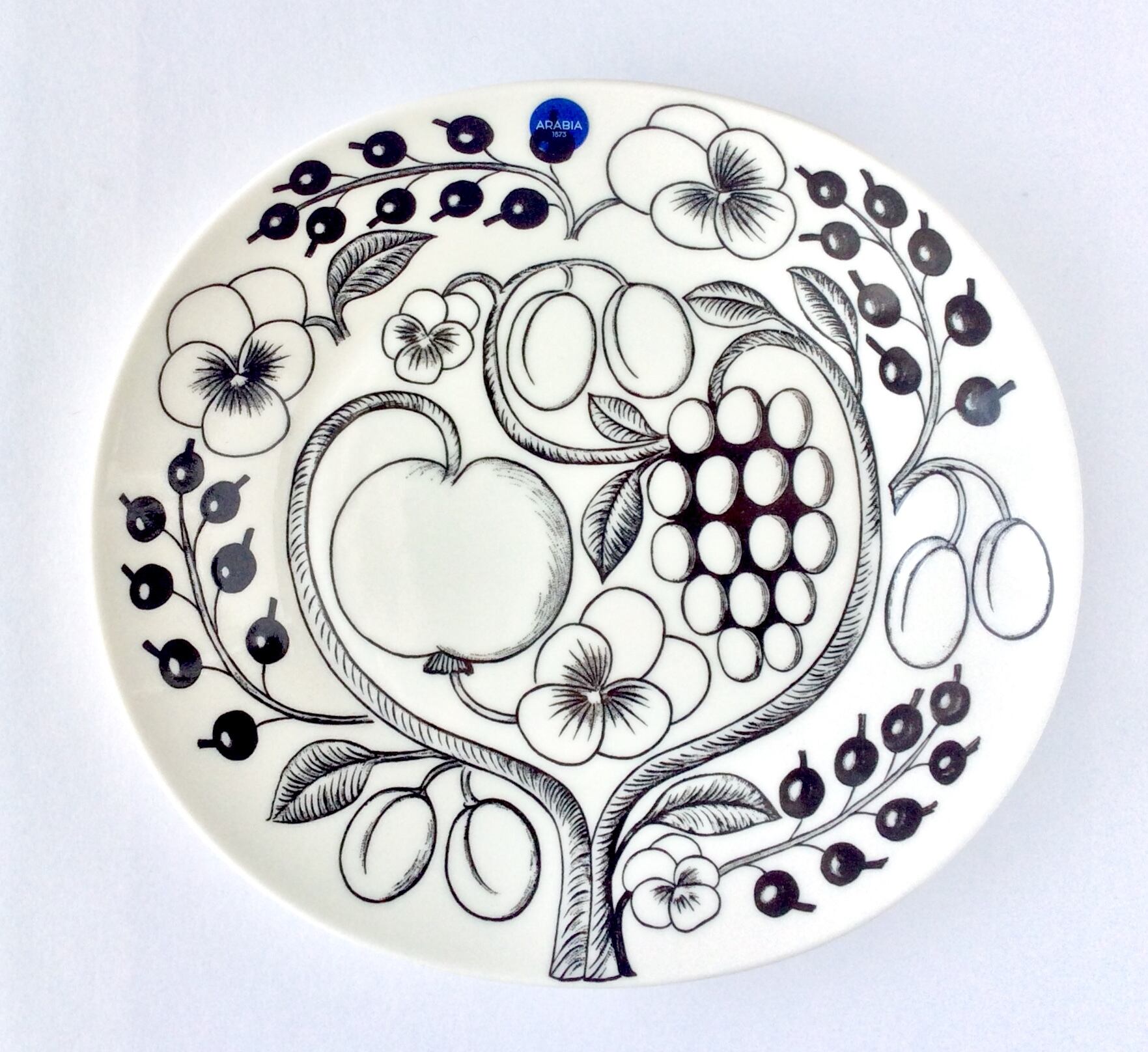 パンジー、カシス、ぶどう、りんごなどの瑞々しい花や果実のモチーフが大胆に描かれつつも、どこかメランコリックな雰囲気を漂わせる1969年の発表以来長きにわたり愛され続ける名作です。